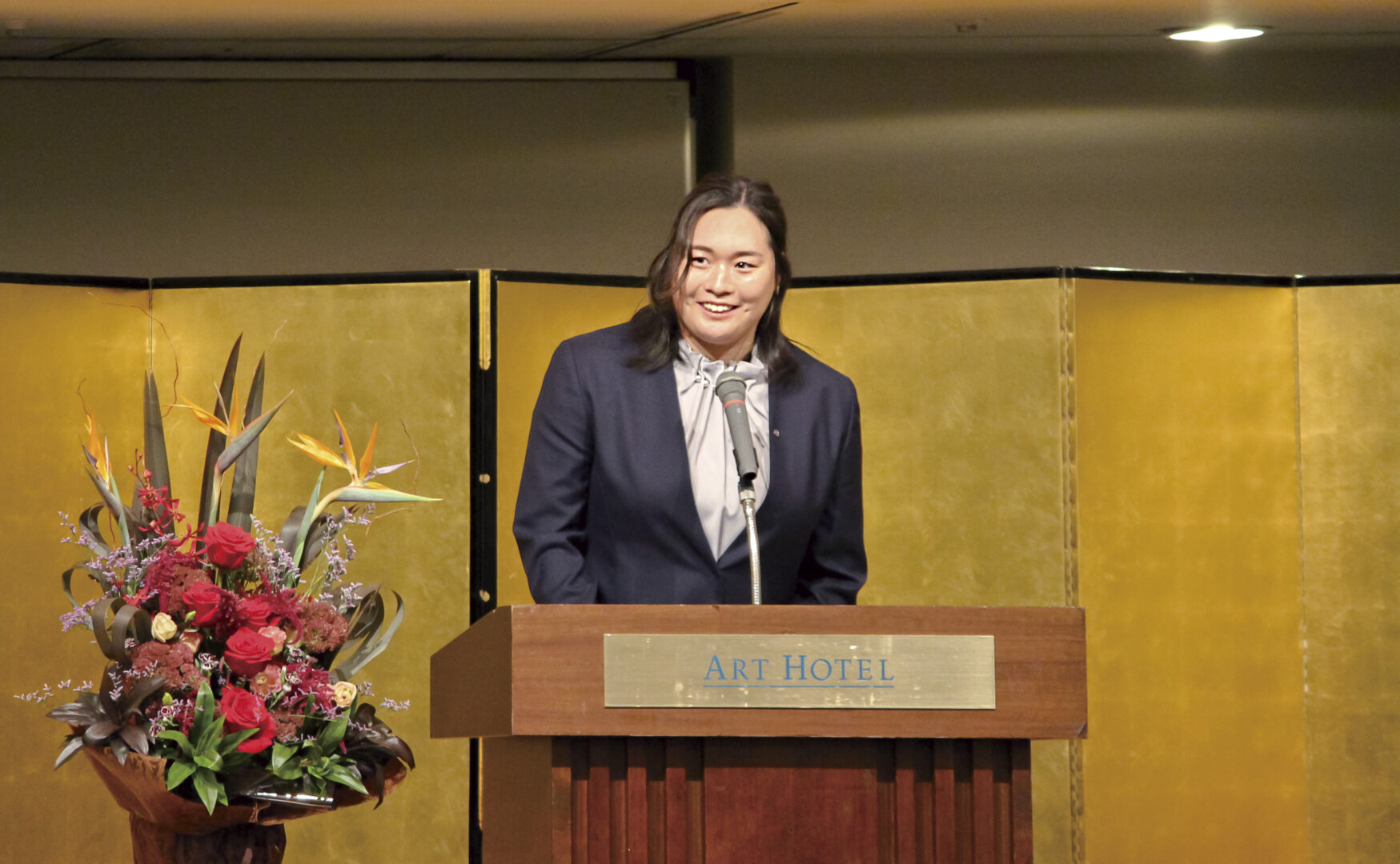 旭川出身でパリ五輪陸上女子やり投げ金メダリストの北口榛花選手を囲む会が10月13日、アートホテル旭川で開かれ、約270人が参加した。旭川市などで構成される後援会が、夢と感動を与えてくれた北口選手に皆で感謝を伝えようと主催した。