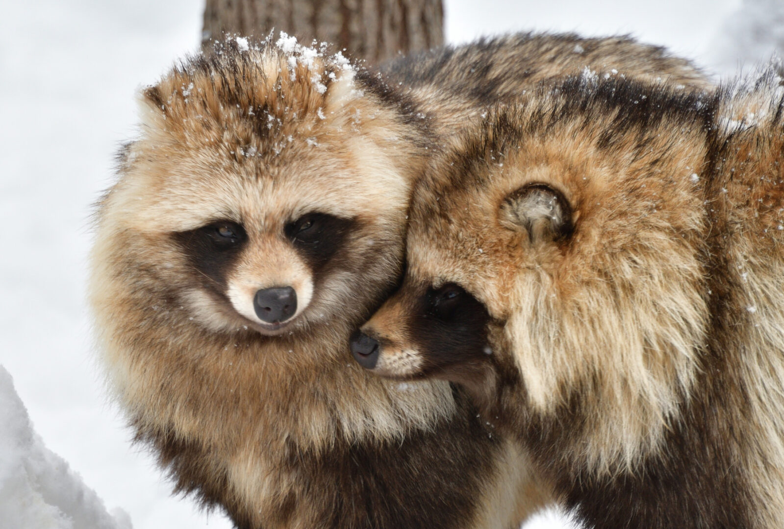 冬のエゾタヌキは冬毛に覆われてモフモフとした姿が人気です。日本ではタヌキは昔話や民芸品にあるほど身近な動物ですが、キタキツネよりも見かける機会は割と少ない動物です。