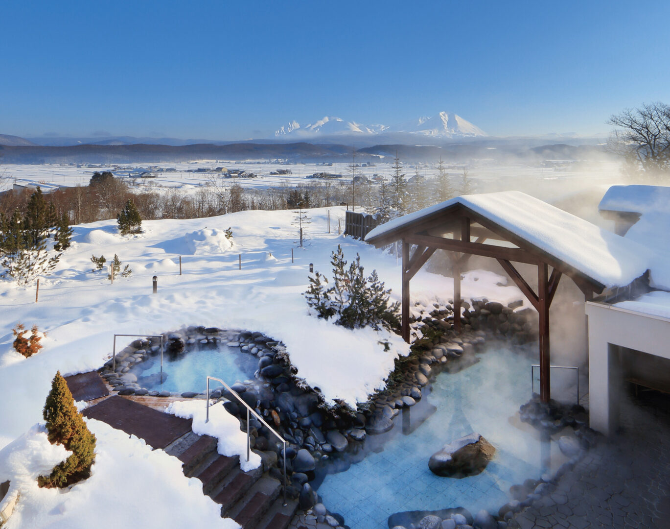 旭川市内から車で30分、森のゆ花神楽は気軽に行ける旭川市民に身近な温泉です。大雪山連峰を見渡せる展望露天風呂は花神楽ならでは。